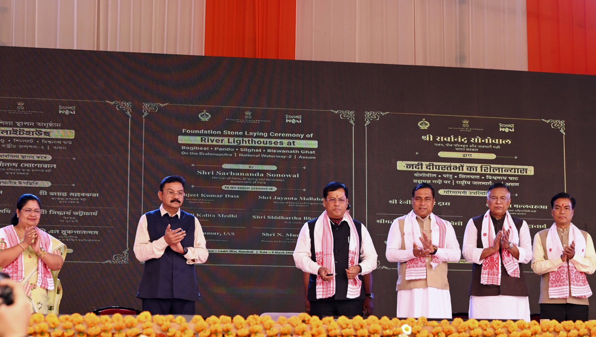 The foundation stone ceremony was attended by Ranjeet Kumar Dass, Minister of Tourism, Government of Assam; Charan Boro, Minister of Transport, Government of Assam; Jayanta Mallabaruah, Minister of Public Health Engineering, Government of Assam; Bijuli Kalita Medhi, Member of Parliament, Guwahati; and Siddhartha Bhattacharya, MLA, East Guwahati. Senior officials present included Vijay Kumar, IAS, Secretary, Ministry of Ports, Shipping and Waterways, and N. Muruganandam, Director General, DGLL.